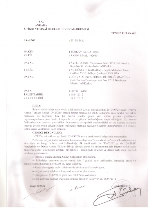 DATÜB’ü adına patentledi, soluğu mahkemede aldı